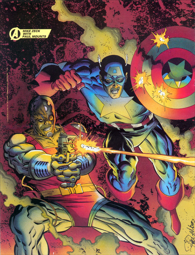 HOT SHOTS AVENGERS: October 1995 - This issue of Marvel's fold-out poster comic celebrates the history of the Avengers, and reprints my cover for the "Captain America: Deathlok Lives" trade paperback.